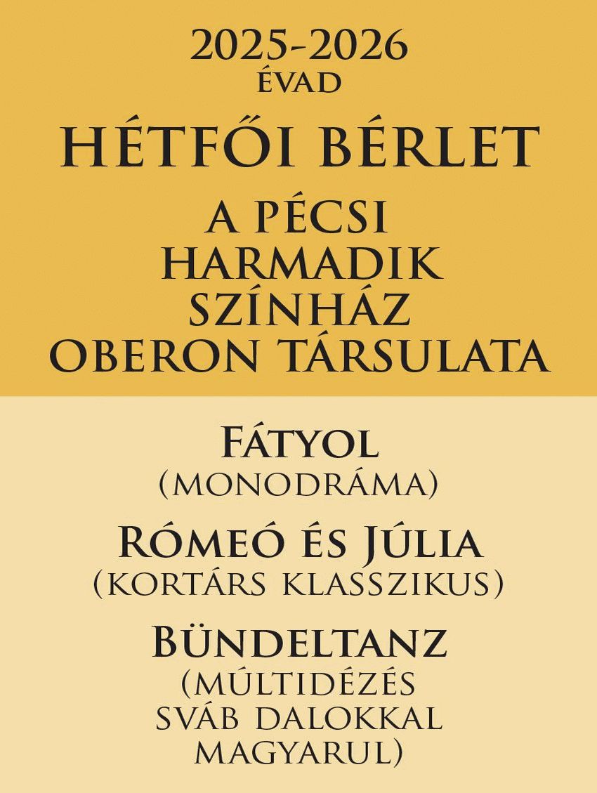 A bérlet előadásai hétfői napokon kerülnek műsorra